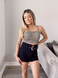 Hey Girl Hey Buckle Denim Shorts - BLACK