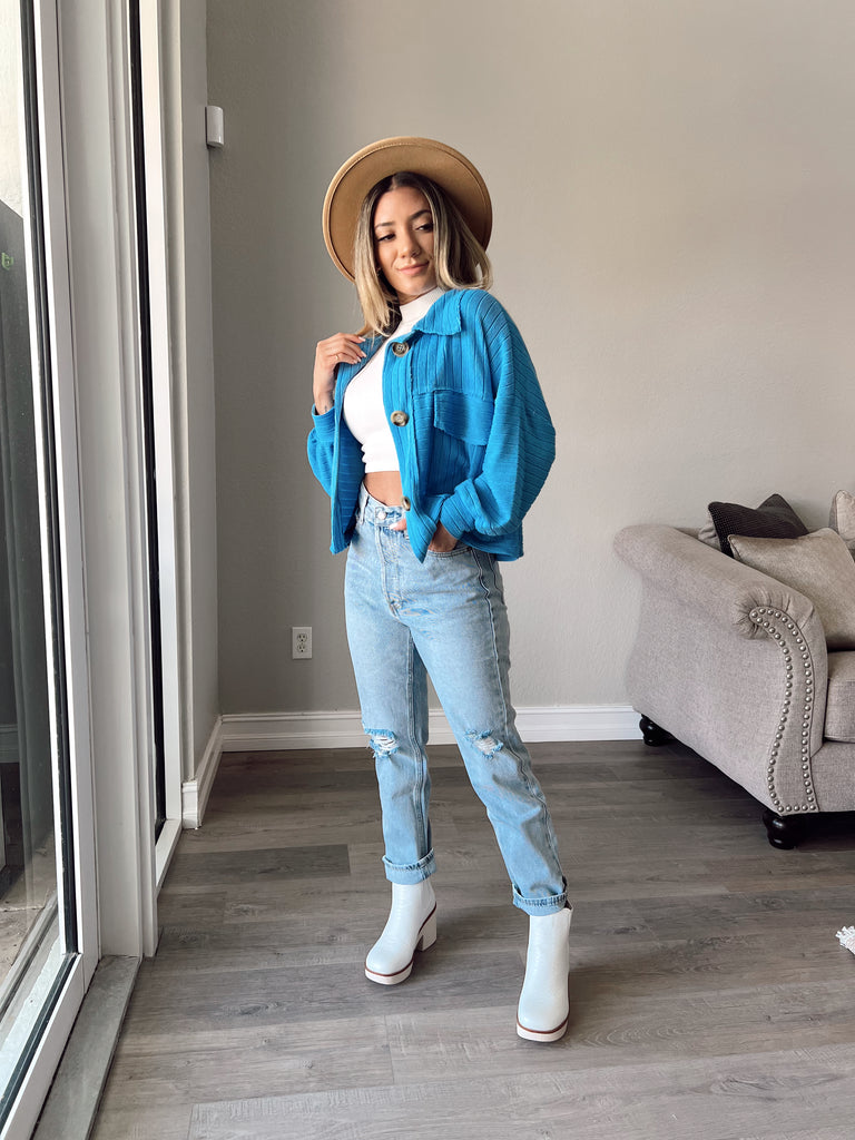 • Bittersweet Cropped Shacket - TURKISH BLUE