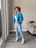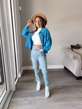 Bittersweet Cropped Shacket - TURKISH BLUE