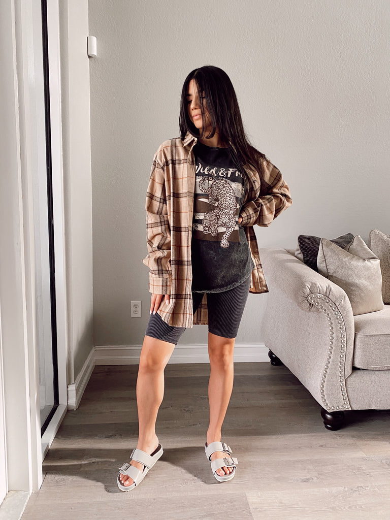 Fast Lane Flannel Shacket - BEIGE